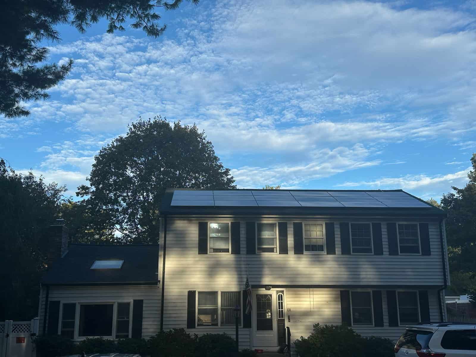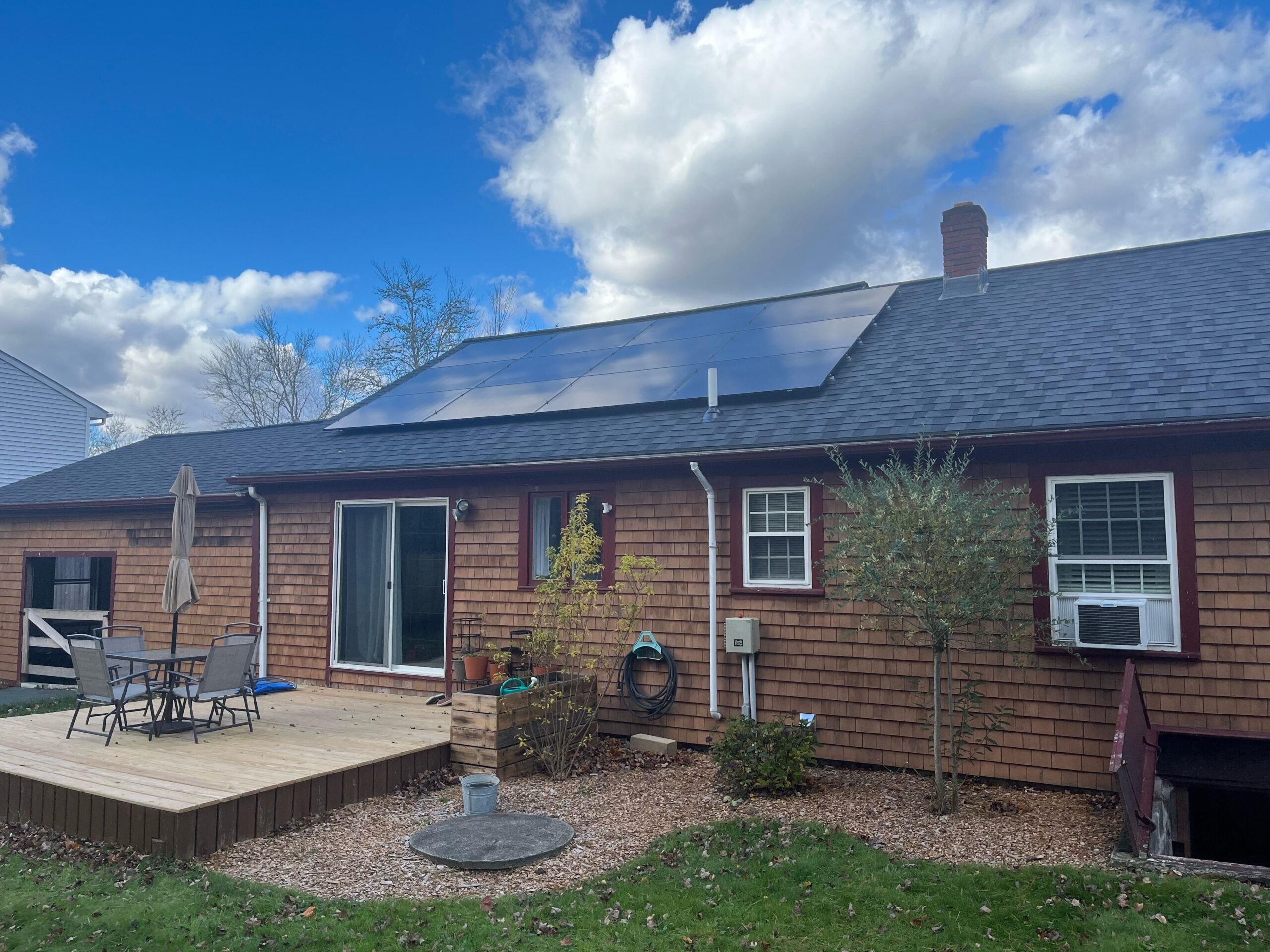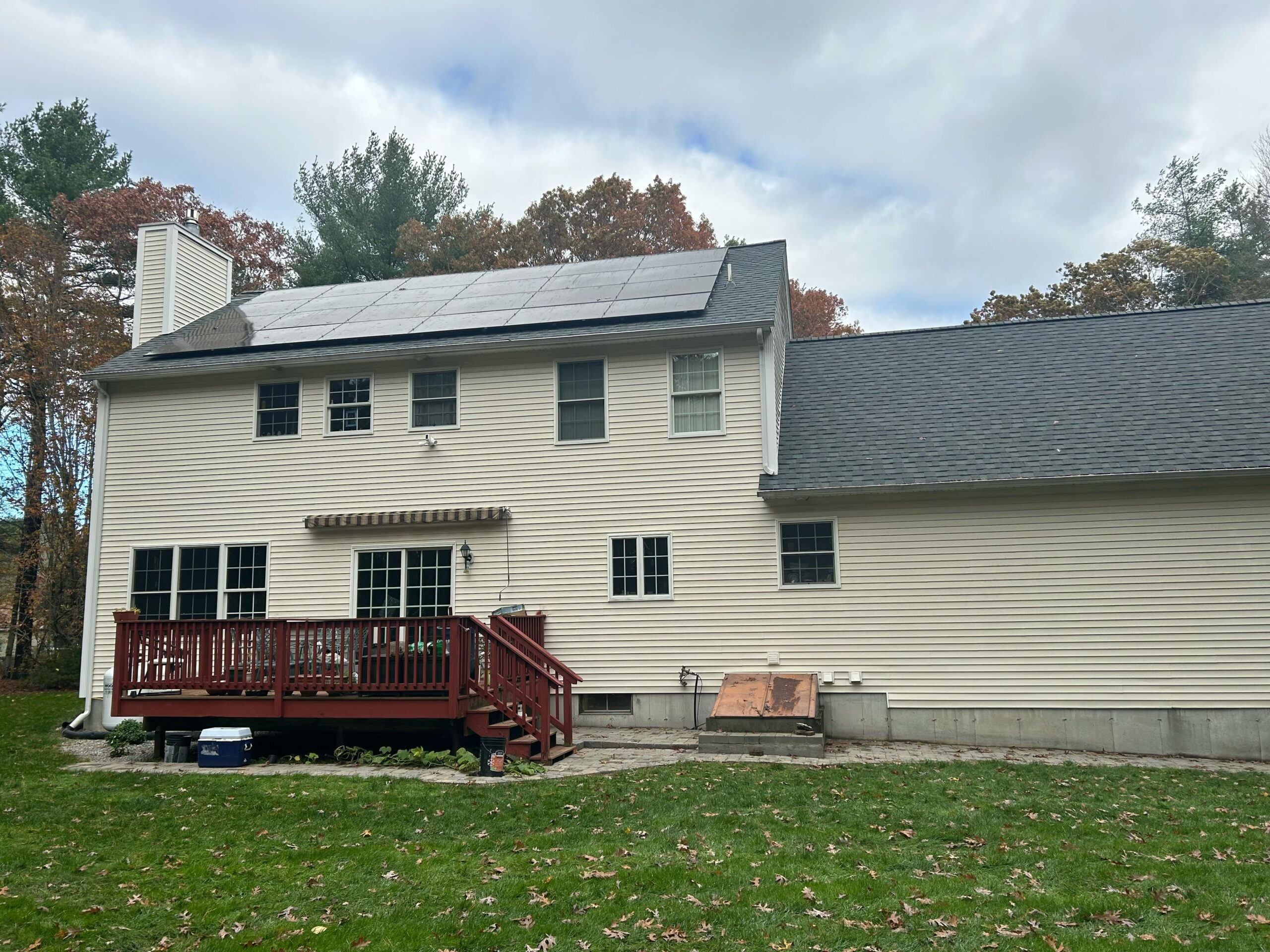 This recent install in Shirley, MA came at the perfect time. With electric rates spiking, we got a 10.8 kW system up before peak summer usage. No upfront cost, and they’re now saving over $60/month with a locked-in, price-protected rate.