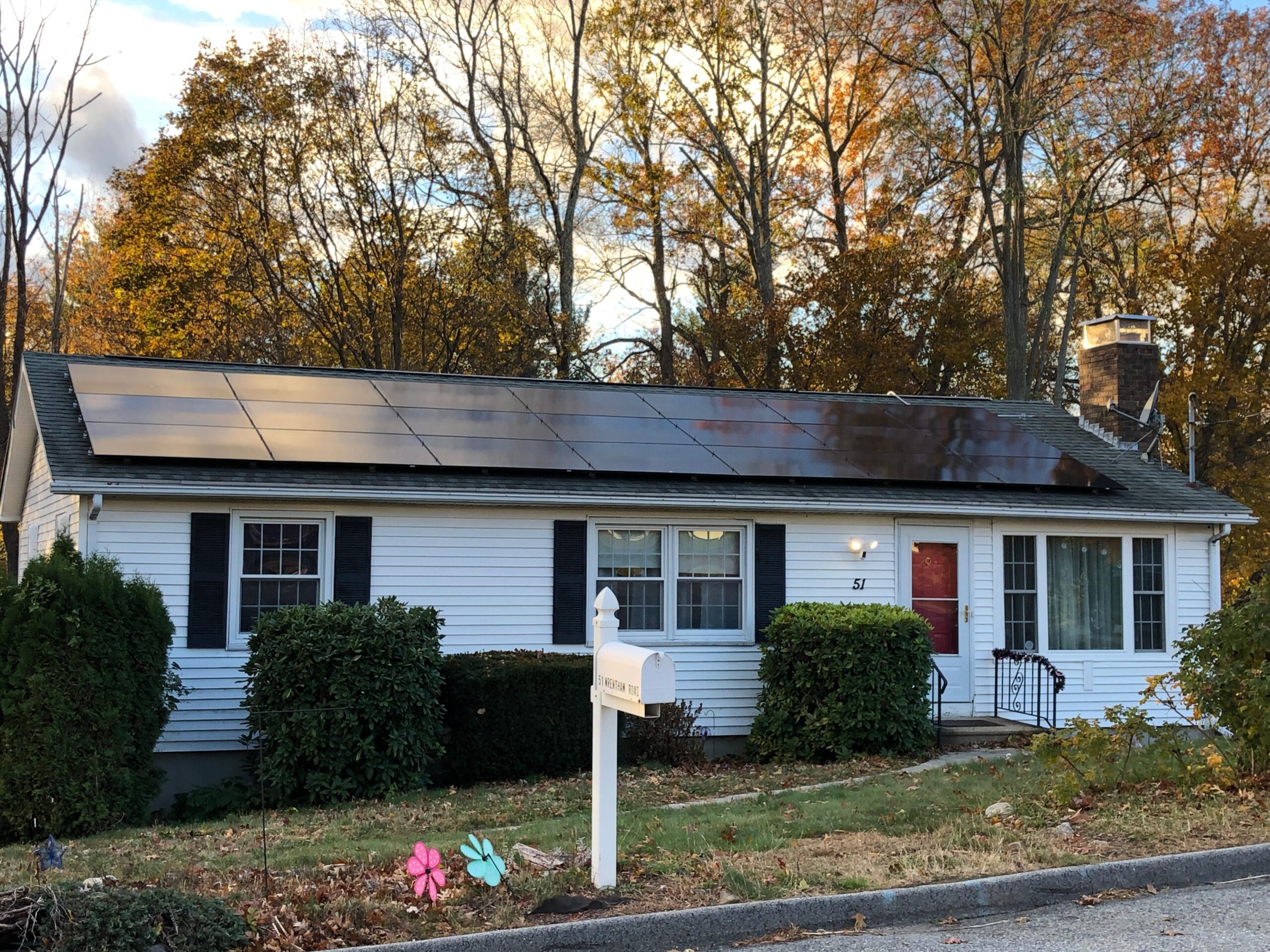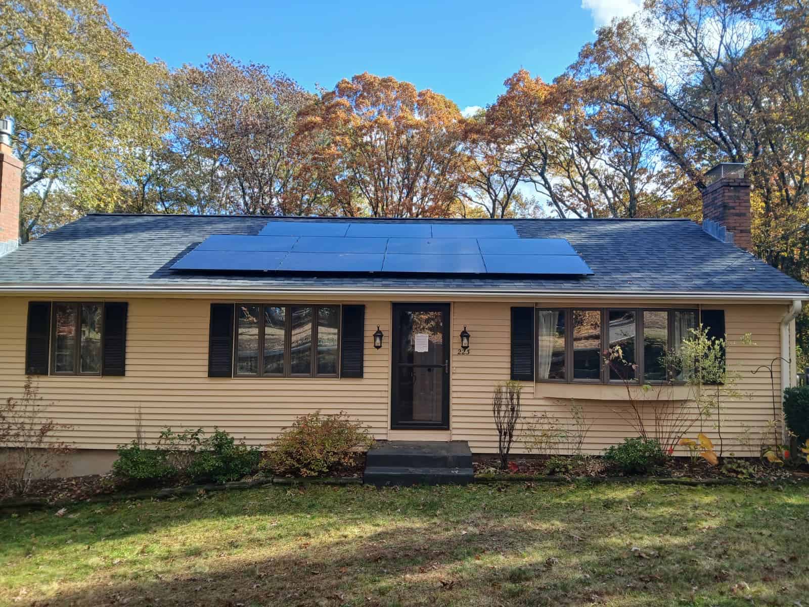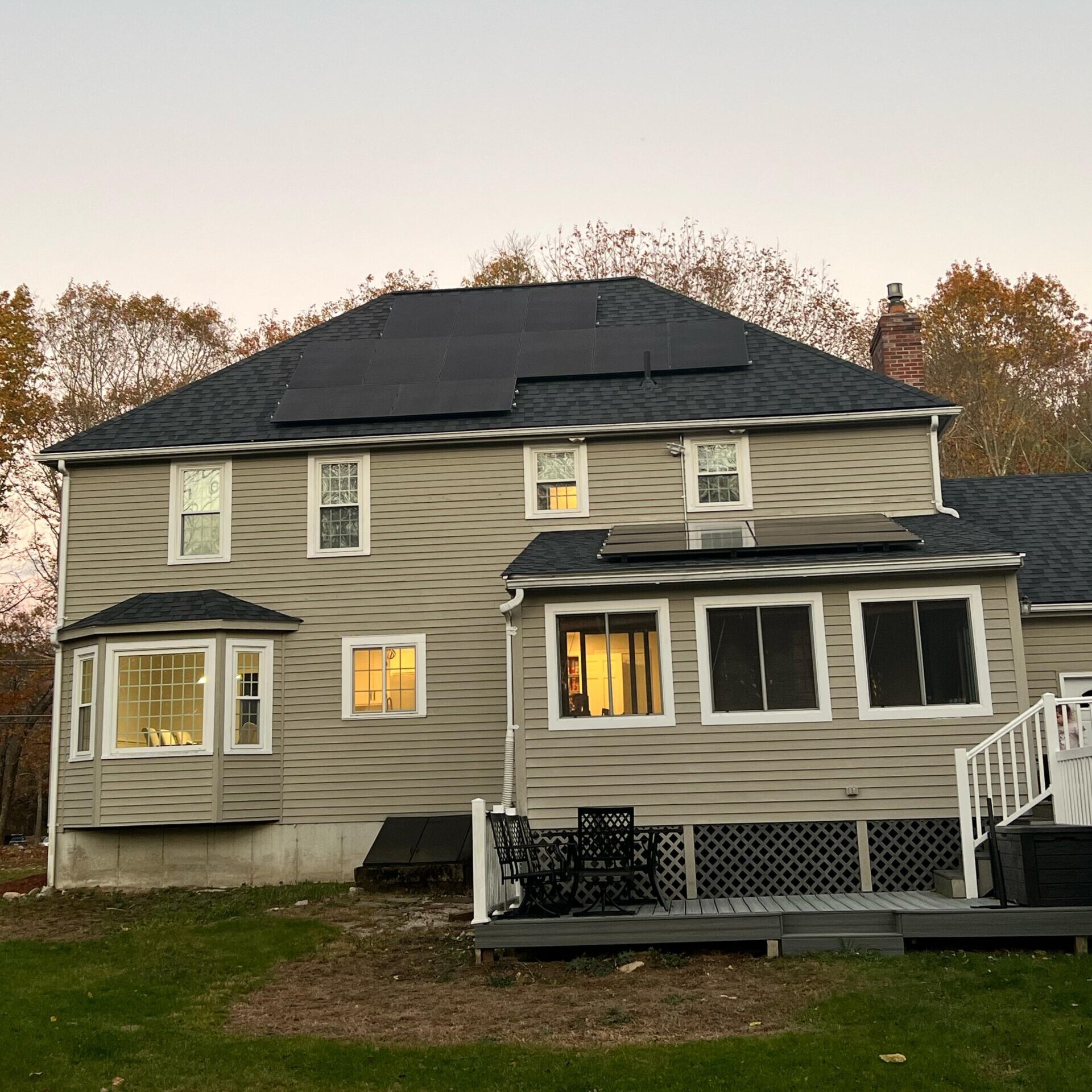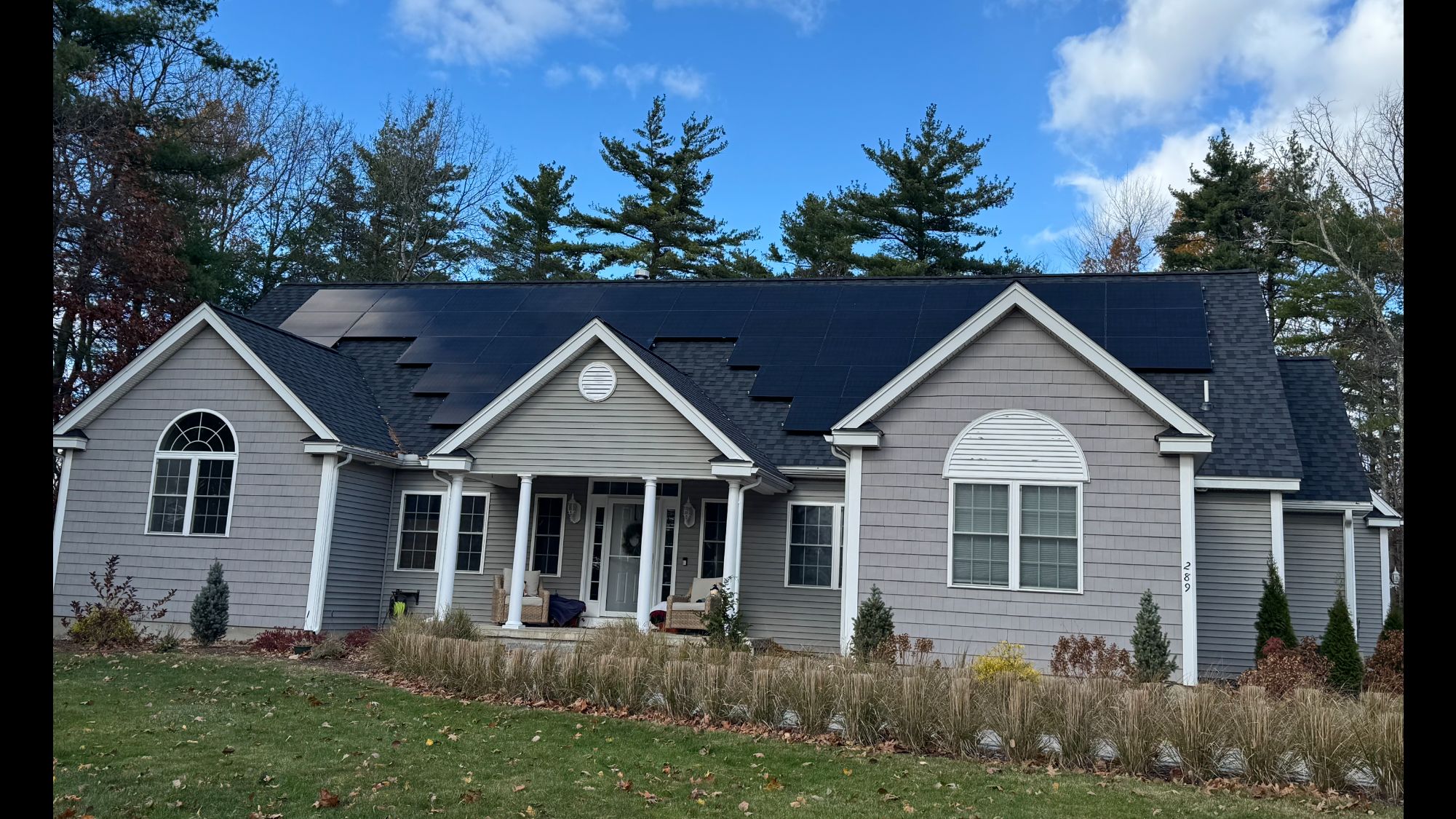 This recent install in Shirley, MA came at the perfect time. With electric rates spiking, we got a 10.8 kW system up before peak summer usage. No upfront cost, and they’re now saving over $60/month with a locked-in, price-protected rate.